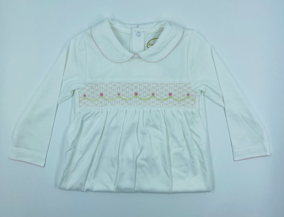 Embroidered Romper Smock Clothesline Mini Roses - Pima Baby